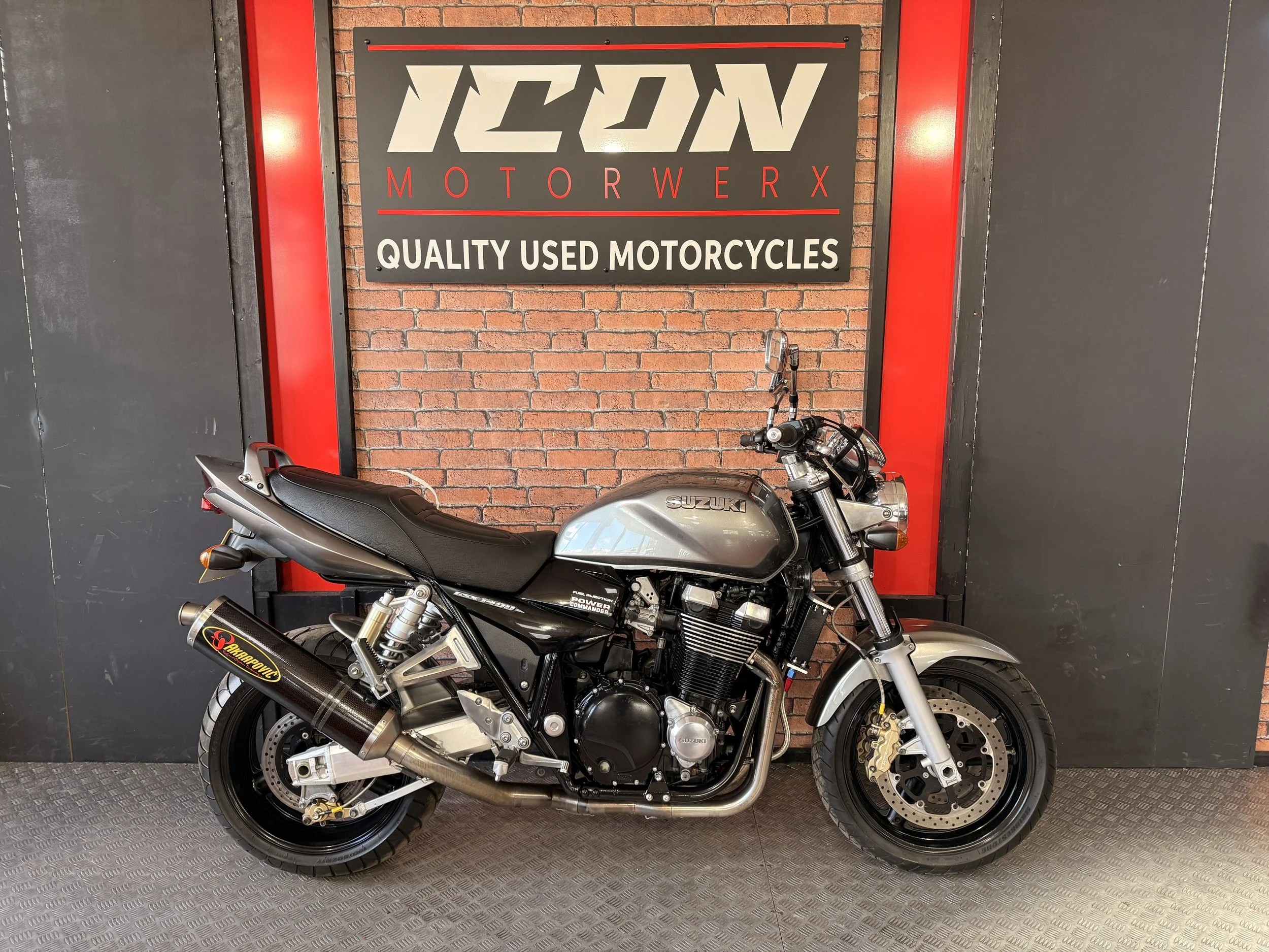 Here we have a lovely example of a 2001 SUZUKI GSX1400! This is a lovely bike with plenty of extras and very low miles! Those who know know how hard it is to find a GSX1400 with such low miles! This example comes with plenty of extras like a Full Akrapovic system, Gear indicator, Rental handlebars, GSX billet top clamp, HEL Performance oil cooler and Braided lines making this a fantastic bike for someone wanting something they can jump on and enjoy for many miles to come! Don’t miss out on this bike as it won’t be around long!