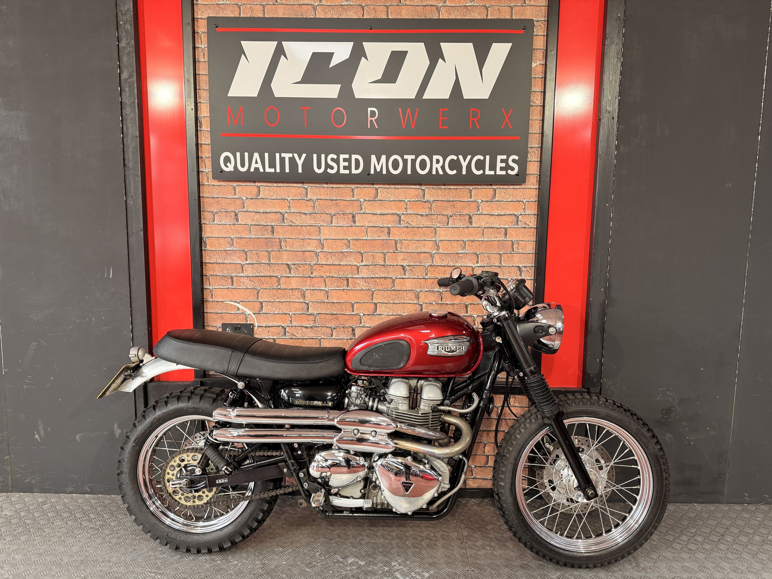 Here’s one for all you budding Steve Mcqeens out there! 2005 Triumph Bonneville scrambler 790cc, it doesn’t come much cooler than this, with the nobbely tyres, hi slung pipes, high rear mudguard, motor cross bars it really does look the part, the bike has only covered 11988 miles and has been very well cared for, come and take a look or have this bike delivered to your door,