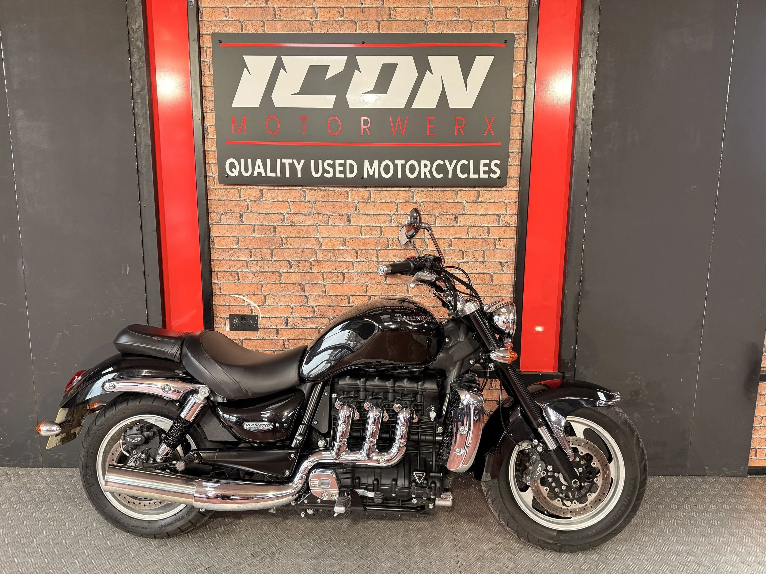 Here we have a lovely example of a 2012 Rocket 111 Roadster! Roadsters are similar to the classic but have foot pegs closer to the centre of the bike and come with ABS brakes giving it a more sporty riding position while retaining the comfort and longevity that the rocket 3 is renowned for! This is a very nice completely standard bike great for someone wanting a nice clean bike they can just jump on and enjoy for many miles to come! The rocket 3's are widely regarded as one of the greatest cruisers ever built with its powerful engine, fantastic brakes, fantastic suspension and amazing comfort! This is a great bike and definitely wont be around long so don't miss out!